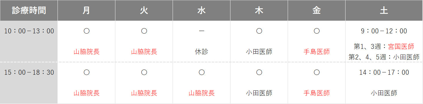 受付時間は、診療終了時間の30分前までとなりますのでご了承ください。